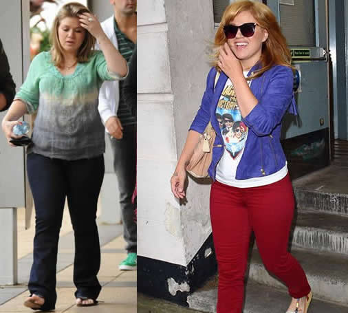 Kelly Clarkson spends her time losing weight and getting pounds. This is the "yo-yo" effect. She always lose weight fast before a concert or a ceremony. It's not recommended to follow this diet. Do not do this. In the photo, the singer going out of the gym: